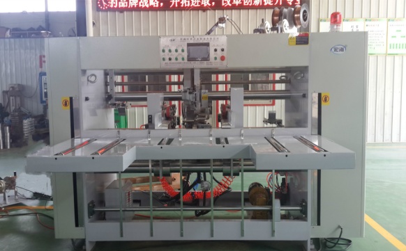 Place cardboard on both sides of the paper feeding section. Enter the paper feeding length on the display, press the paper feed button and start paper feeding. When the cardboard reaches the middle, the photoelectric sensors at the left and right ends detect the cardboard and receive the signal, and the clamping and gluing of the middle section starts to work, so that the two cardboards become one. Then the baffle falls, and the paper begins to be sent out to the bending part. After reaching the bending part, the left and right sides begin to bend and align, and then the paper pressing wheel falls, the baffle also falls, and the cardboard is sent out.